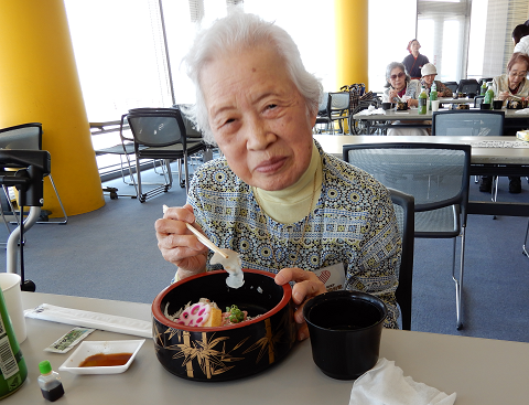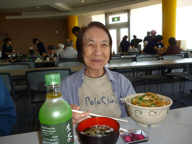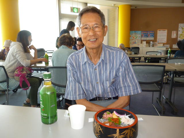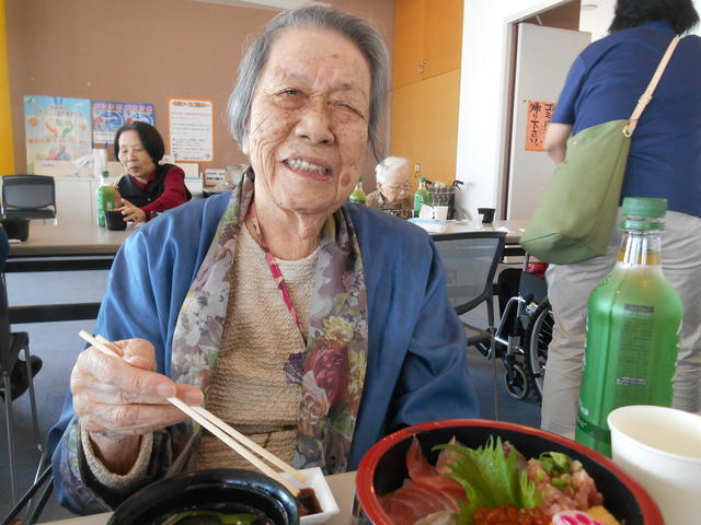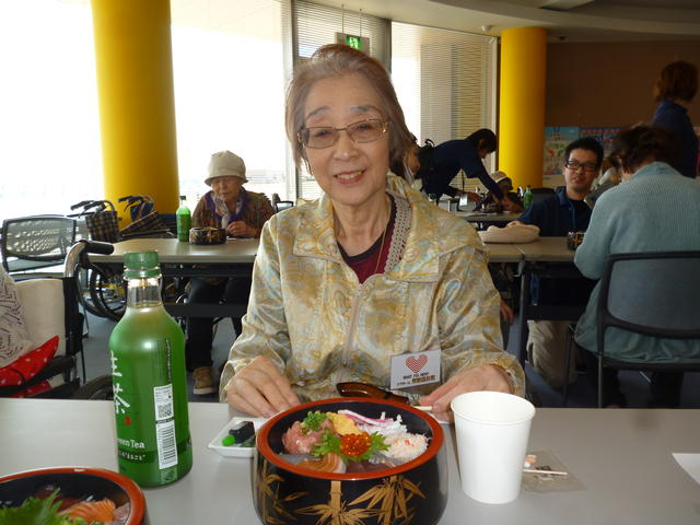 昼食の海鮮丼を目の前に笑顔は隠せずです![]()