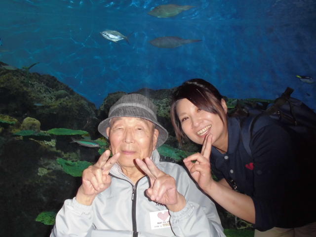 大きな水槽の前では、マイナスイオンを浴びてリフレッシュ![]()