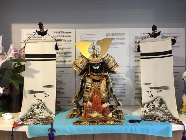 鎧兜の横に、のぼり旗も飾られています