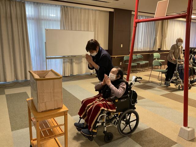 2022年01月07日 初詣(❁´ω`❁) こんにちは介護課のよぞらです٩(ˊᗜˋ*)و今日は国府館1階の多目的ホールで行われた初詣について書きたいと思います鳥居とねがい箱とスクリーンに地元の神社 「総社宮」の写真を写して神社の完成ですそれでは、参拝の様子を一緒に見ていきましょう手を合わせて各々のお願いををしました参拝のあとは国府館お手製のおみくじを入居者さまに引いて頂きましたおみくじの中身は『大吉』しか入ってないのは秘密ですよ(✿˘艸˘✿)最後に。皆様にとって、今年1年が幸多き年になりますよう祈っております本日も最後までご愛読ありがとうございました タグ :#参拝#初詣#様子#神社#総社宮#写真#おみくじ#スクリーン#鳥居#大吉 < 前の記事次の記事 > コメント コメントフォーム 名前 コメント 評価する リセット リセット 顔 星 投稿する 情報を記憶