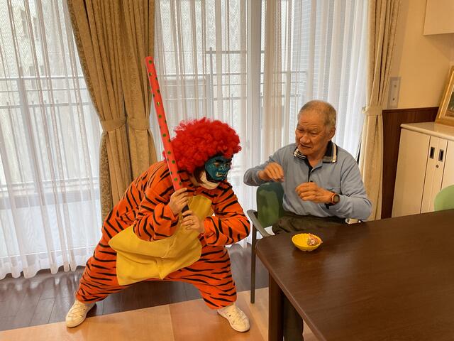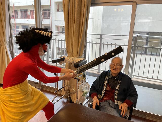 2023年02月08日 鬼はー外👹福はー内😀✨ こんにちはケロヨンです寒い寒いと思っていたら、近所の梅の花が咲いていて「もう咲いてるー!」とびっくりしました2月3日は節分でしたが、皆さまのご家庭では豆まきをされたのでしょうか今日は国府館の豆まきの様子をお伝えします「鬼が来たぞー!」「鬼は―外 あっちへ行け―!」鬼のかつらが外れてしまうハプニングが鬼と一緒にパチリ「わしは新人の鬼じゃー」「やだーあっち行って―」「かわいいわねー」「あなたは誰?」「それは秘密です」「えい、ヤー」「鬼は―外、それ」「どうぞどうぞ ぶつけておくんなせえ」みなさん遠慮して、なかなか豆を投げてくれないのですが楽しそうに笑ってくださいました来年の鬼役は誰にしようか今から検討中です来年もお楽しみに本日もご愛読ありがとうございました タグ :#鬼は外#福は内#節分#ハプニング#一緒#新人#秘密#遠慮#来年#豆まき < 前の記事次の記事 > コメント コメントフォーム 名前 コメント 評価する リセット リセット 顔 星 投稿する 情報を記憶