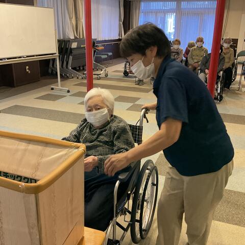 施設長から入居者の皆さんへ「年頭のご挨拶」があり、そのあと順番に参拝です