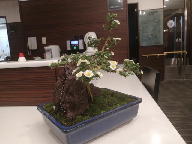 2024年11月16日 菊が見事に咲いています 秋も深まって、朝は肌寒い季節になりましたね。こんにちは、グリーンです。今回は国府館に置いてある鉢植えの菊を紹介します。まず、玄関に置いてある黄色と白の見事な菊。3本を同じ高さに揃えながら育てるのは難しいと思います。 ロビーには手作りの盆栽の菊が置いてあります。入居者用フロアに置いてある大輪の菊です。見事に咲き誇っています。こちらも見事に咲いてますね~。職人技ですね~。別の種類のかわいらしい菊です。チコちゃんも一緒に飾ってあります。鮮やかな色合いが楽しめるこの菊は、入居者の皆さんの日々の楽しみとなっています。グリーンでした。 タグ :#菊#盆栽#秋#職人技#育てる#大輪#鉢植え#見事 < 前の記事次の記事 > コメント コメントフォーム 名前 コメント 評価する リセット リセット 顔 星 投稿する 情報を記憶